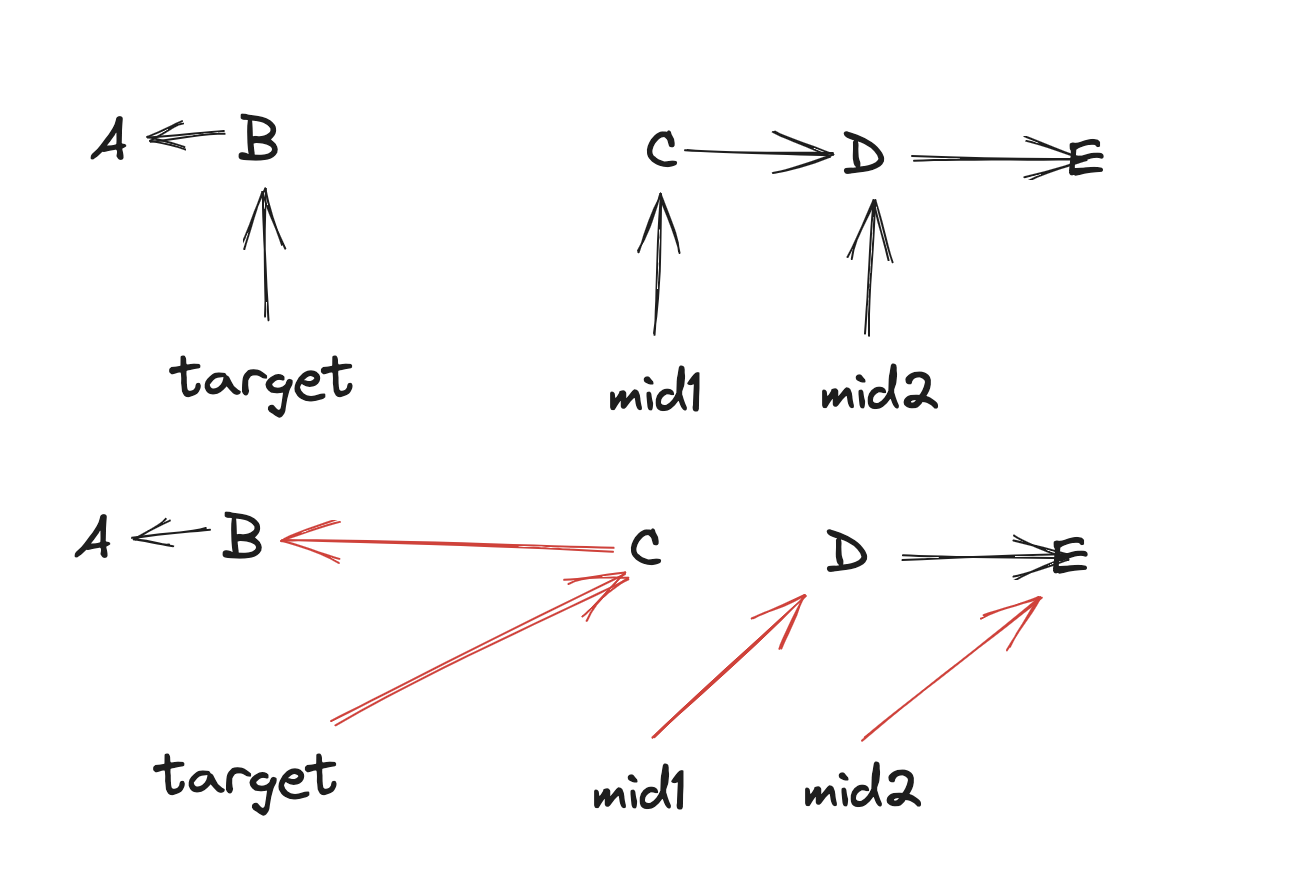 这个方案没想到,利用递归从链表尾回溯到链表头,完成翻转